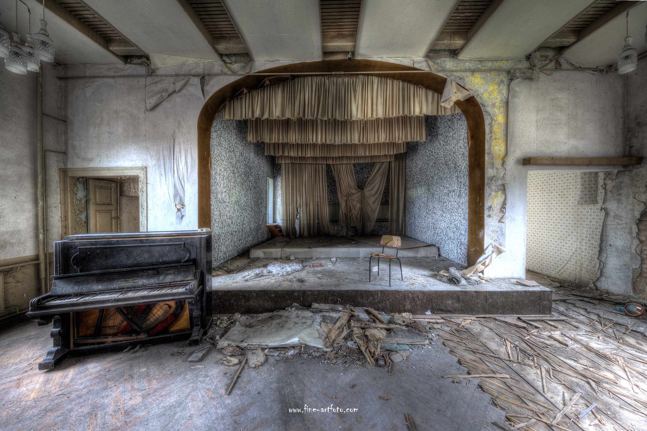 A small former cozy village far in the German outback close to a calm brook. Even being an idyllic place their people partly left the grounds. What is wrong with this place when even the only common and social place is lost, where once weddings, parties and canivals have been celebrated. Future where are you ?