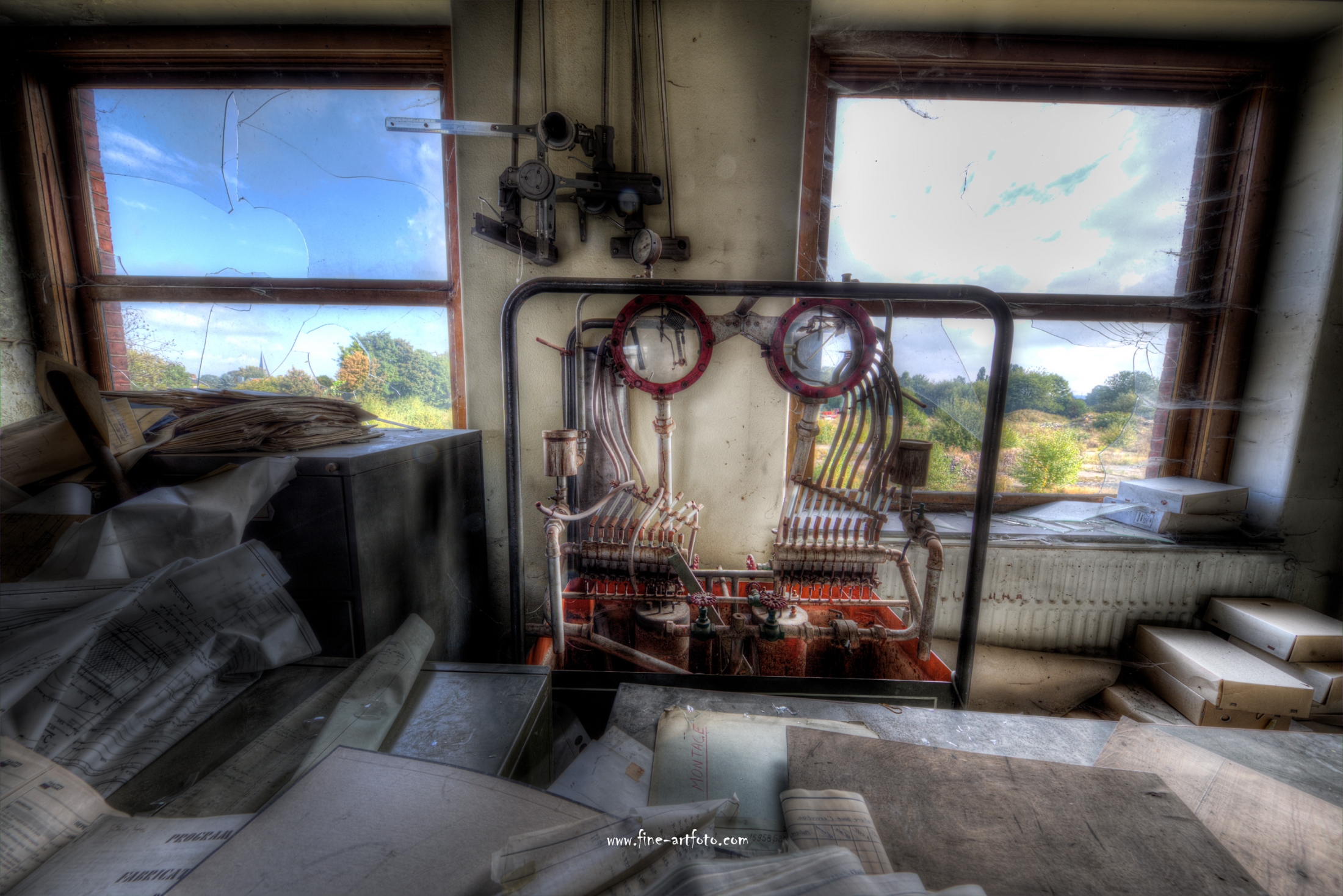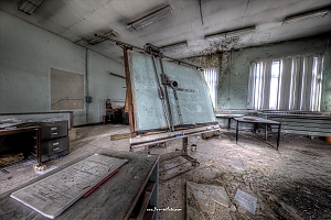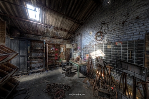 A small /medium enterprise surely run for a generation long, building boilers, just suddenly could not hold up with competition and the fast dvelopments in engeneering. So progress ate it up. Boss and empoyees left the place on their last working day and since then the place is fogotten. The place is full of details and it is still very easy to imagine the place and its hierachy of people working there.