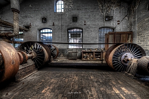 A small factory hidden somewhere in Europe. A stunning place that took my breath away. Imagine all the noise from the single and double cylinder steam engines. The wheels, the belts the turning of metall. The huge number of people in this confined place. A window into time just 70 years back.