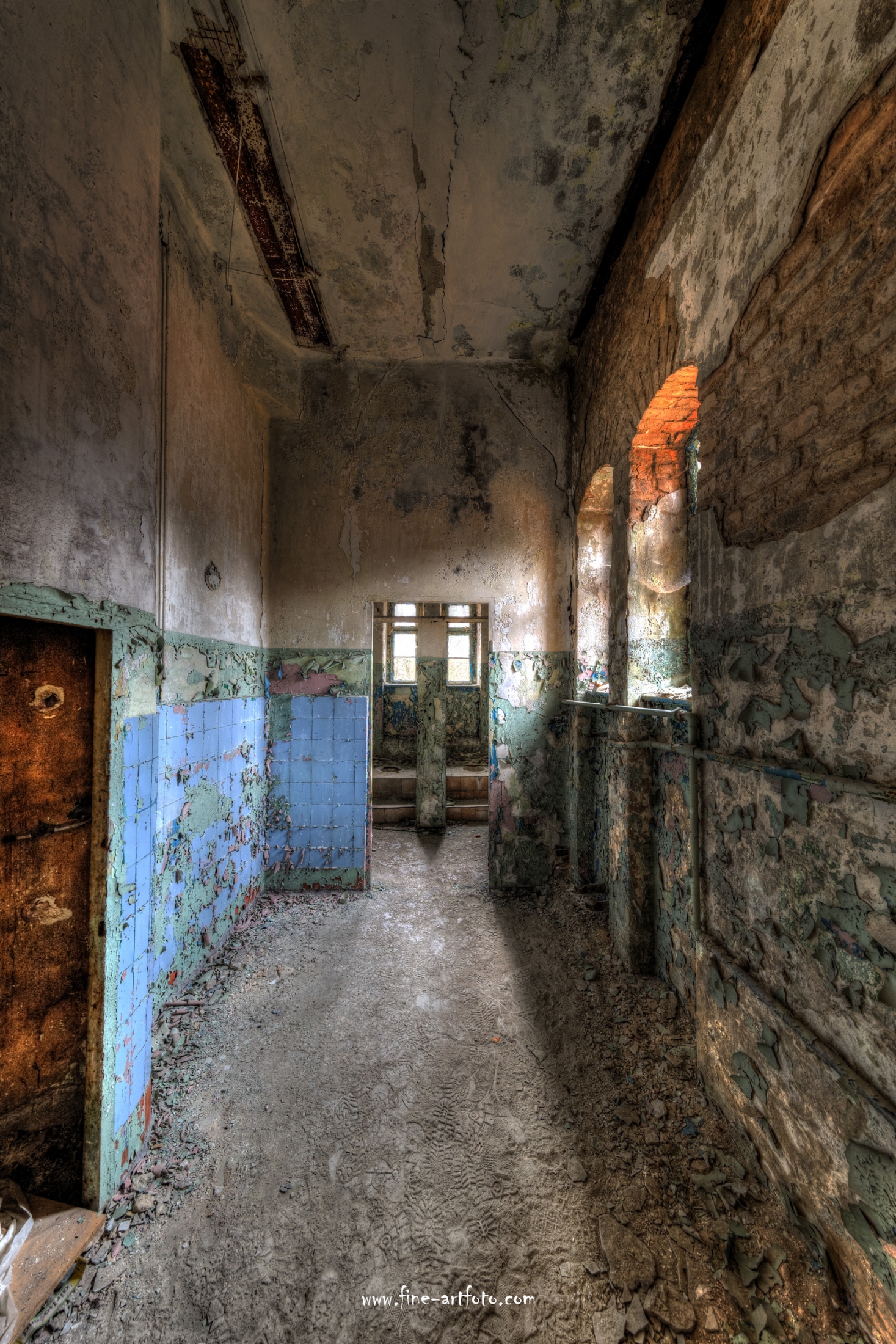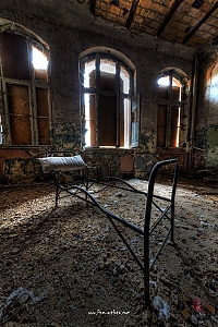 Beelitz today is corridors and flaking color. Interior, lamps and beds are now fully lost and disapeared.